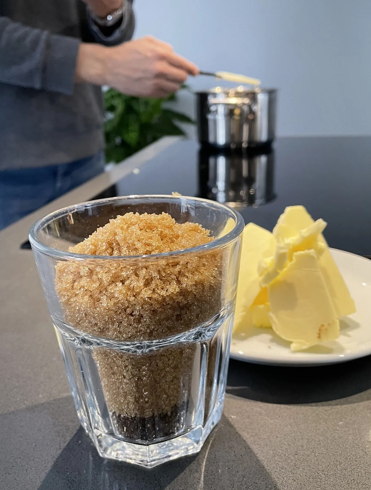 Stir the ingredients until all the butter and sugar are dissolved.