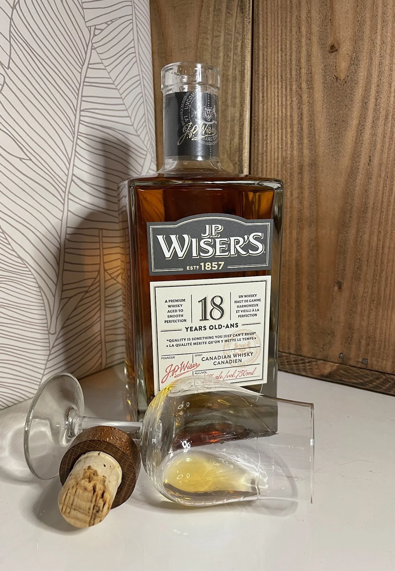 Enter the J.P. Wiser's 18 year old Canadian Whisky with half the label in French.